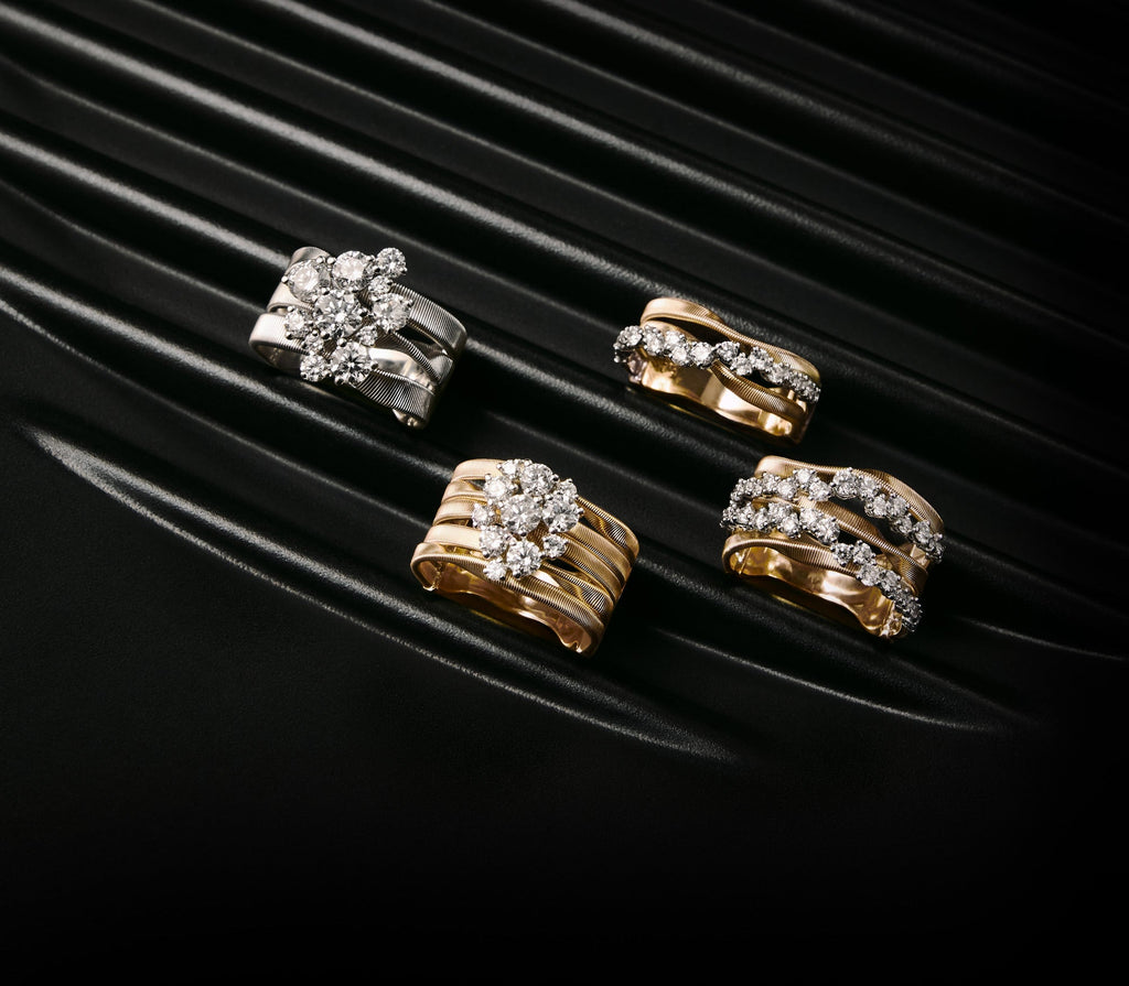 Diamond clusters and artful silhouettes mark a contemporary evolution of timeless designs.